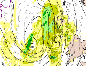 The southwest flow continues through Thursday. Early showers for western and central parts of Ireland and also for west Scotland. Some showers in the Midlands and southern England as well, light and scattered, passing eastwards, and ultimately fading through the morning as a weak ridge of high-