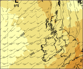 As high pressure extends from the east, the day will be mostly dry, with perhaps a few early showers near the English Channel. Brighter spells are expected, especially over Ireland and Wales. Maximum temperatures of 8C in the south and 5C in the north.